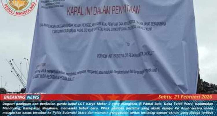 MEDIA MATARAKYATNEWS |Minahasa – Dugaan tindak pidana penipuan terkait mangkraknya Kapal Karya Mekar 2