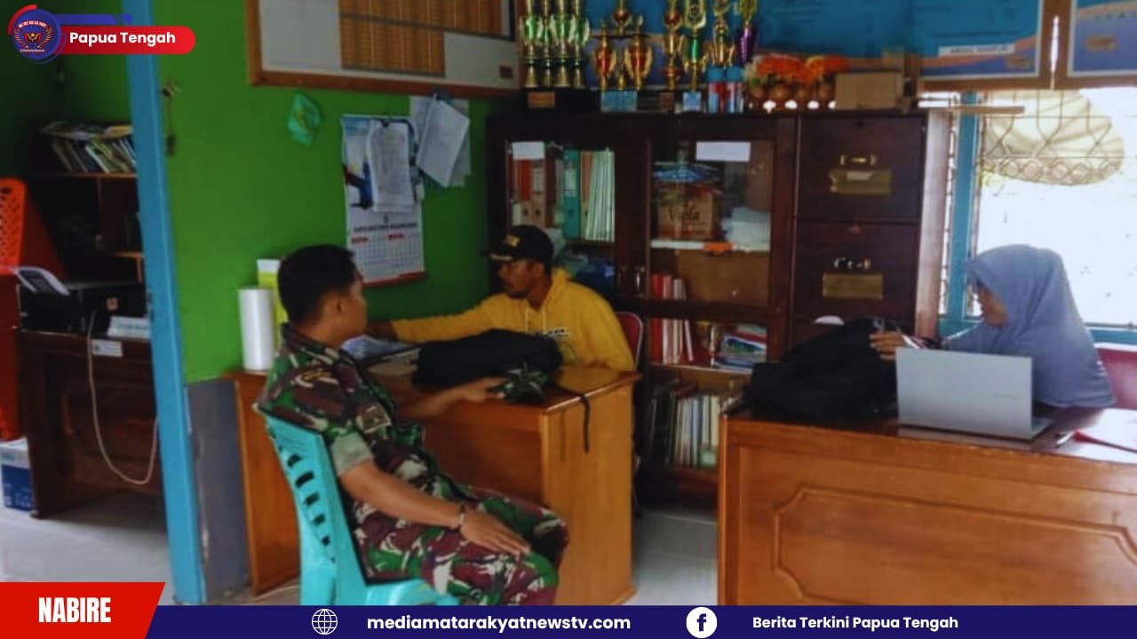 MEDIA MATARAKYATNEWS || Makimi -Babinsa Ramil 1705-02/Napan Serka Rustam melaksanakan anjangsana dan jalin silaturahmi ke Kantor Kampung Legari Jaya Distrik Makimi Kab. Nabire Prov. Papua Tengah.