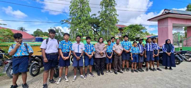 BHABINKAMTIBMAS KAMPUNG KALISEMEN LAKSANAKAN PENERTIBAN DAN PENYULUHAN LALU LINTAS DI SMP NEGERI 2 NABIRE BARAT