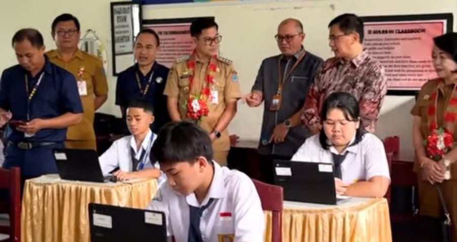 MEDIA MATARAKYATNEWS || MINUT – Bupati Minahasa Utara (Minut) Joune J.E Ganda, hadir memantau secara langsung proses perilisan Token, Asesmen Nasional Berbasis Komputer (ANBK) Tahun 2025, hari pertama di SMP Advent Unklab Airmadidi, Minahasa Utara. Senin, (25/08/2025).