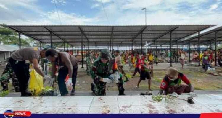 Jumat Bersih, Anggota Kodim 1705/Nabire Bersinergi Bersama Polri, Pemda dan Instansi Terkait Bersihkan Pasar Mama-Mama Papua Sayang