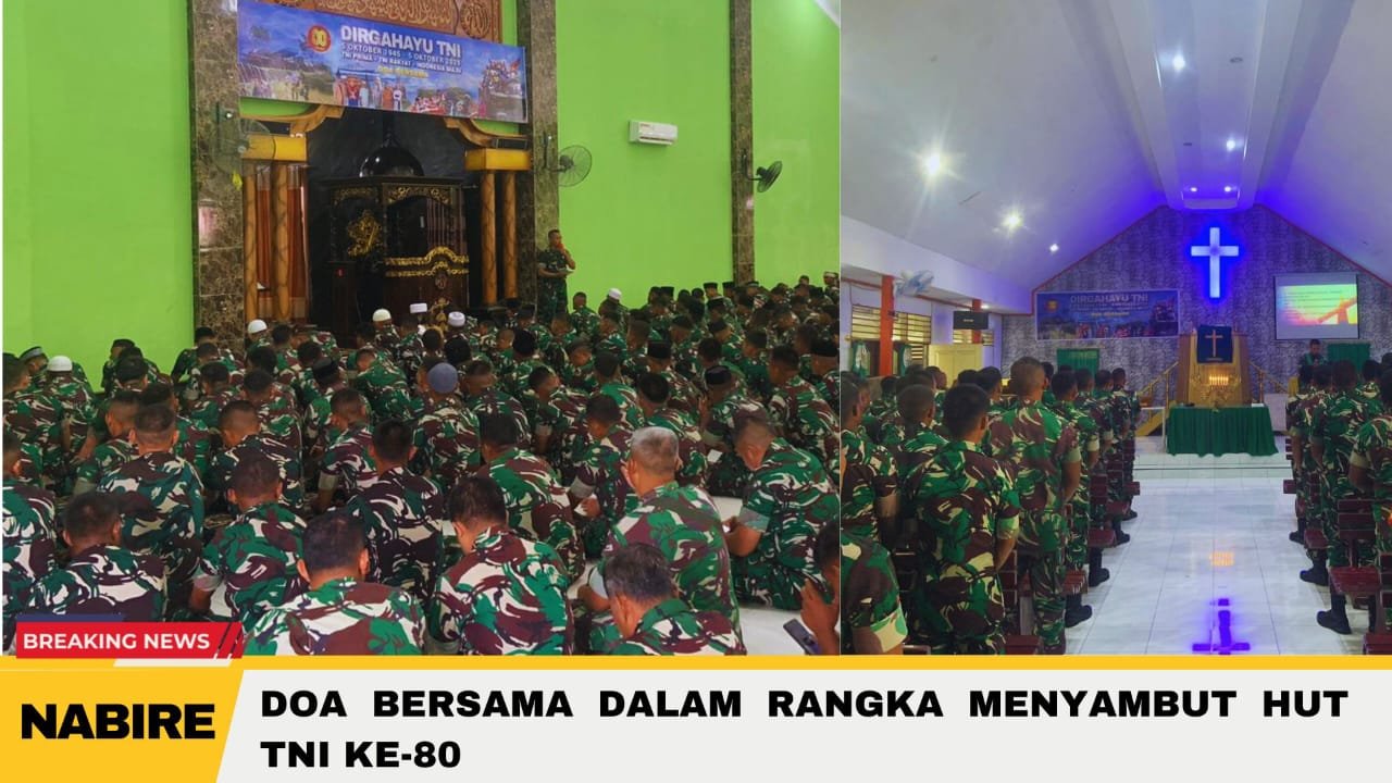 MEDIA MATARAKYATNEWS || NABIRE, PAPUA TENGAH – Dalam rangka menyambut Hari Ulang Tahun ke-80 Tentara Nasional Indonesia (TNI), Kodim 1705/Nabire melaksanakan doa bersama sebagai wujud rasa syukur dan harapan agar TNI semakin kuat, profesional, dan dicintai rakyat.