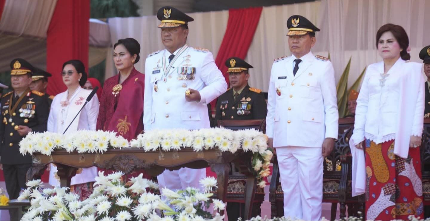 Dengan didampingi langsung oleh Wakil Gubernur Dr. Victor Mailangkay SH, MH bersama jajaran Forkopimda, pejabat Pemerintah, tokoh masyarakat, pelajar, serta ribuan peserta dalam suasana kebangsaan, Gubernur Sulut Yulius Selvanus memimpin langsung jalannya Upacara, dengan penuh rasa bangga dan ucapan syukur.