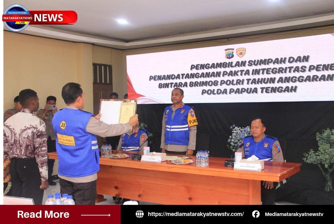 MEDIA MATARAKYATNEWS || Nabire, Papua Tengah – Kapolda Papua Tengah Brigjen Pol Alfred Papare, S.I.K., memimpin secara langsung penandatanganan pakta integritas penerimaan seleksi calon anggota Bintara Brimob Polri tahun anggaran 2026, Rabu (19/11/2025).
