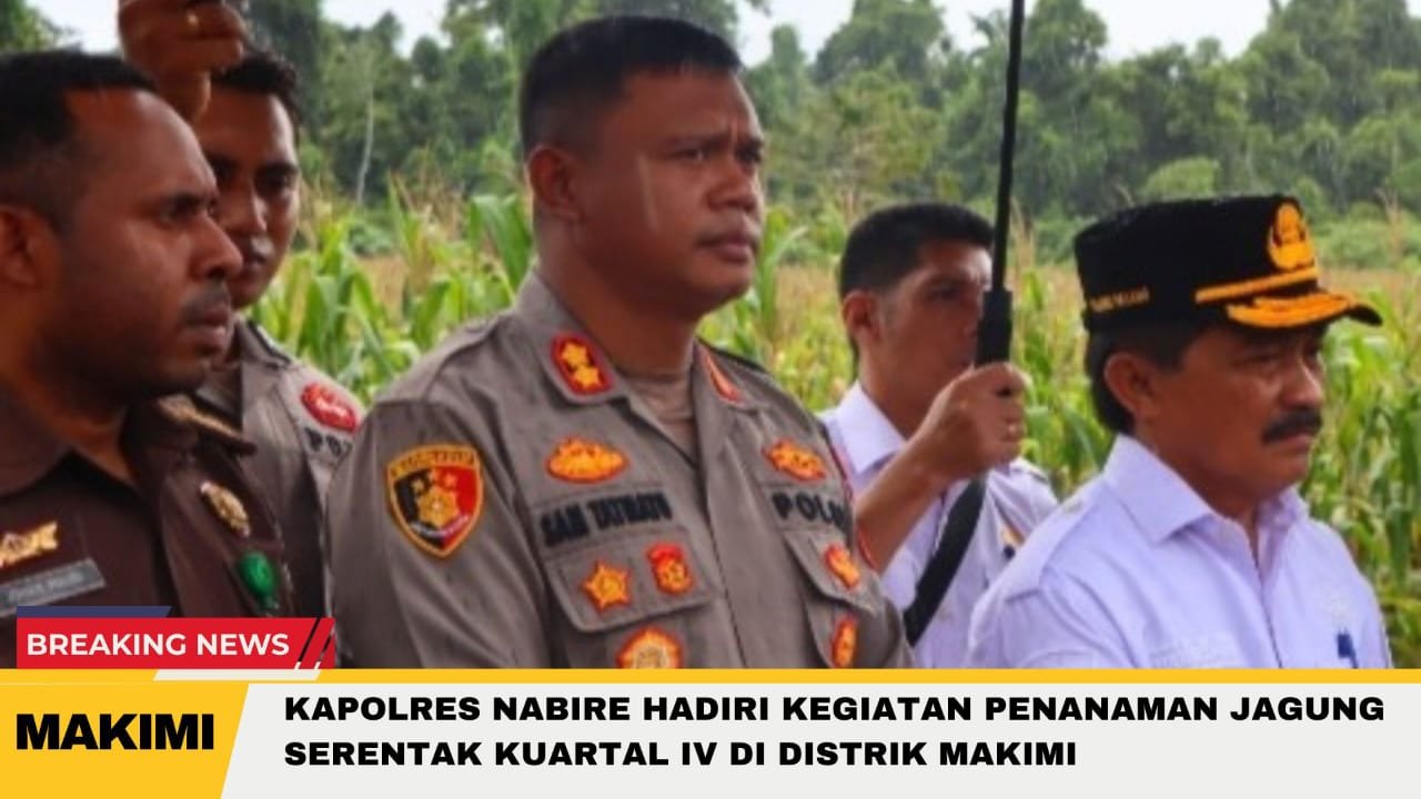 MEDIA MATARAKYATNEWS || Nabire, Papua Tengah – Kapolres Nabire AKBP Samuel D. Tatiratu, S.I.K., hadiri kegiatan Penanaman Jagung Serentak Kuartal IV, dalam rangka mendukung program Swasembada Pangan Tahun Anggaran 2025, yang dilaksanakan pada Rabu, 8 Oktober 2025 pukul 11.00 WIT, bertempat di Kampung Legari Jaya, Distrik Makimi, Kabupaten Nabire, Provinsi Papua Tengah.
