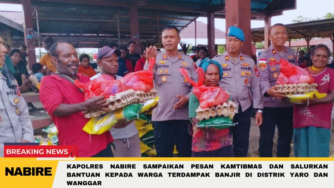 Sebagai wujud kepedulian, Kapolres Nabire AKBP Samuel D. Tatiratu, S.I.K., turun langsung meninjau lokasi terdampak banjir pada Kamis (9/10/2025) sore hari, sekaligus menyampaikan pesan-pesan kamtibmas dan menyalurkan bantuan kemanusiaan kepada masyarakat yang terdampak.