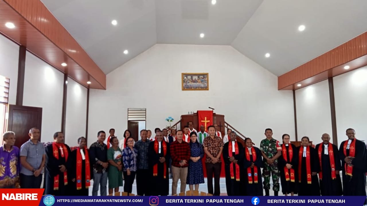 MEDIA MATARAKYATNEWS || NABIRE, PAPUA TENGAH – Komandan Kodim 1705 Nabire, Letkol Inf Marudut H. Simbolon menghadiri secara langsung acara peresmian dan pentahbisan Gereja GKI Talitakum, yang berdiri megah di tengah masyarakat. Gereja ini, merupakan salah satu hasil nyata dari pelaksanaan TNI Manunggal Membangun Desa (TMMD) ke-125, yang digelar di Kampung Manunggal Jaya, Lagari 4, Distrik Makimi, Kabupaten Nabire.