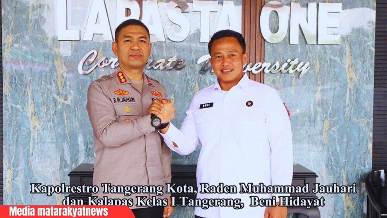 MEDIA MATARAKYATNEWS || TANGGERANG – Lapas Kelas I Tangerang, menerima kunjungan kerja Kapolres Metro Tangerang Kota, Kombes Pol Dr. Raden Muhammad Jauhari, S.H., S.I.K., M.Si., beserta jajaran, Senin, 11 Agustus 2025. Kehadiran Kapolres disambut langsung oleh Kepala Lapas Kelas I Tangerang, didampingi seluruh Kepala Unit Pelaksana Teknis (KaUPT) Pemasyarakatan se-Kota Tangerang. Terlihat hadir dari pihak Lapas, yakni Kalapas Perempuan Kelas IIA Tangerang, Kalapas Kelas IIA Tangerang, Kalapas Pemuda Kelas IIA Tangerang, Kabapas Kelas I Tangerang, dan Kabapas Kelas II Ciangir.