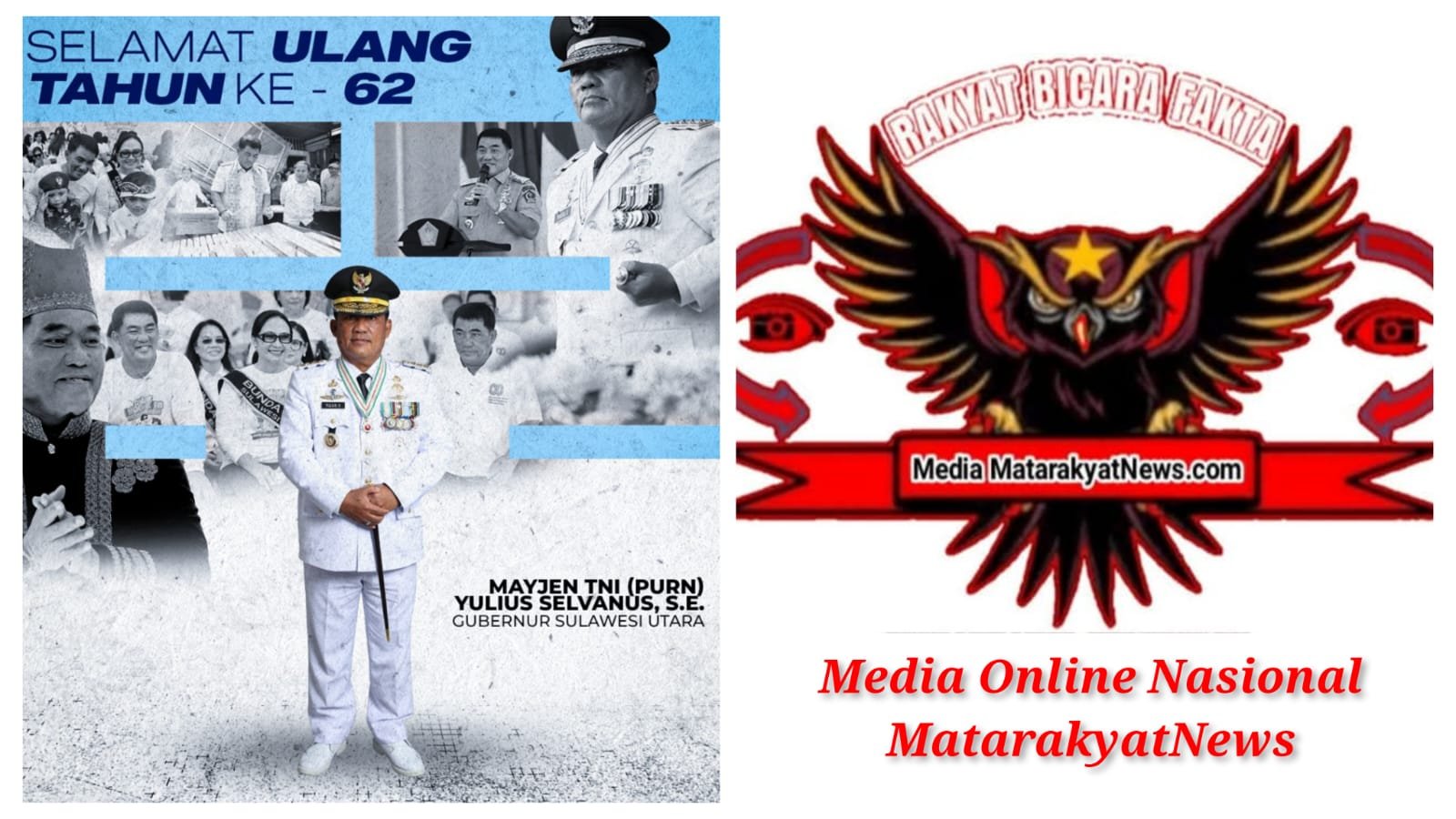 MEDIA MATARAKYATNEWS || SULAWESI UTARA – Gubernur Sulawesi Utara Mayjen TNI Purnawirawan Yulius Selvanus, SE berulang tahun ke-62 pada hari ini. Sejumlah tokoh mengucapkan selamat hingga ASN. Masyarakat Sulut merasa sangat bangga, dan berharap Gubernur selalu sehat dan diberkati Tuhan. Semangatnya dalam membangun Sulawesi Utara, untuk masa depan yang lebih maju dan berkelanjutan semakin menginspirasi banyak pihak.