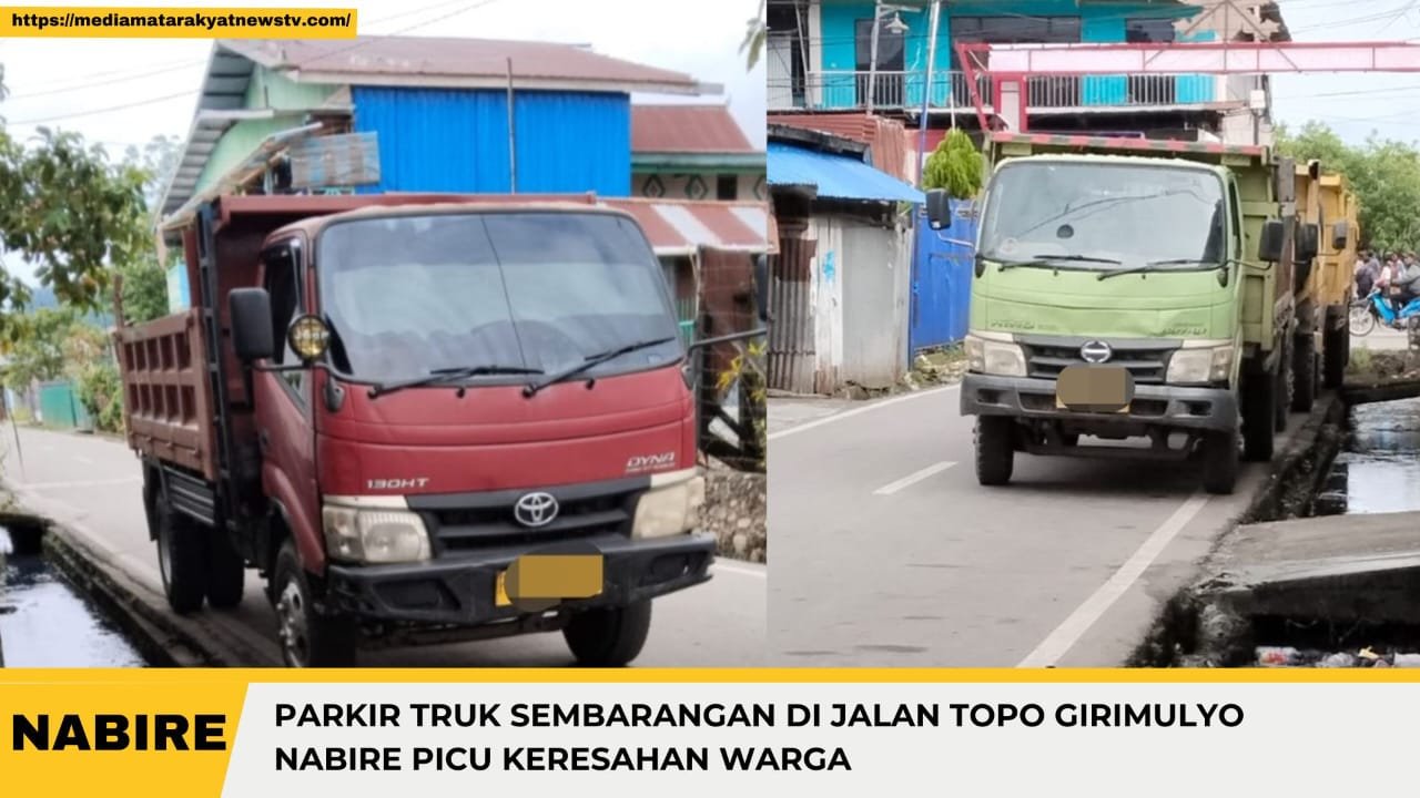 MEDIA MATARAKYATNEWS || NABIRE, PAPUA TENGAH – Warga RT.1 RW.1 Kelurahan Girimulyo, mengeluhkan keberadaan truk-truk yang diparkir sembarangan di pinggir Jalan Topo. Parkiran tersebut dianggap sangat mengganggu arus lalu lintas dan membahayakan keselamatan pengendara maupun pejalan kaki.