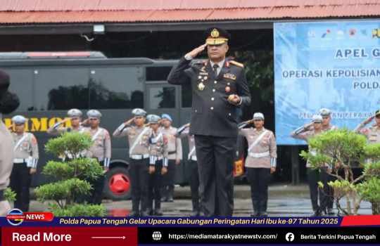 MEDIA MATARAKYATNEWS | Nabire Papua Tengah – Kepolisian Daerah Papua Tengah menggelar Upacara Gabungan Peringatan Hari Ibu ke-97 Tahun 2025 di lingkungan Polda Papua Tengah, Senin (22/12/2025) pagi. Upacara berlangsung di Lapangan Apel Polres Nabire dan dimulai pukul 07.30 WIT.