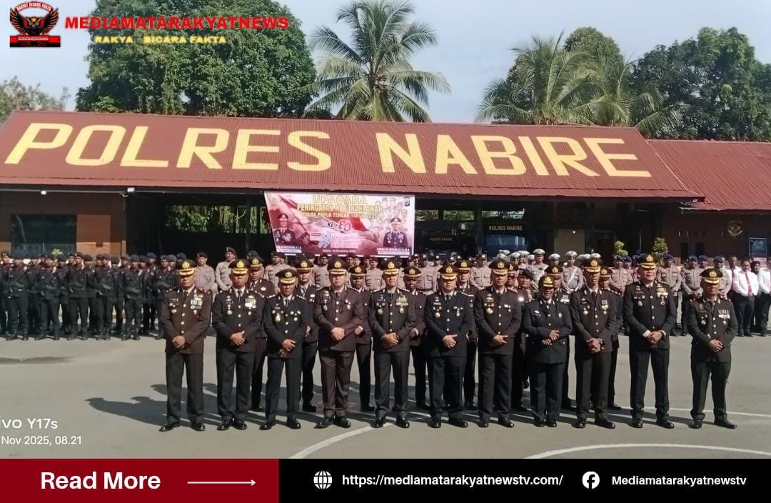 MEDIA MATARAKYATNEWS || NABIRE, PAPUA TENGAH – Dalam rangka memperingati Hari Pahlawan Nasional ke-80, Polda Papua Tengah menggelar Upacara Hari Pahlawan Tahun 2025 pada Senin, 10 November 2025, pukul 08.00 WIT, bertempat di Lapangan Apel Polres Nabire.