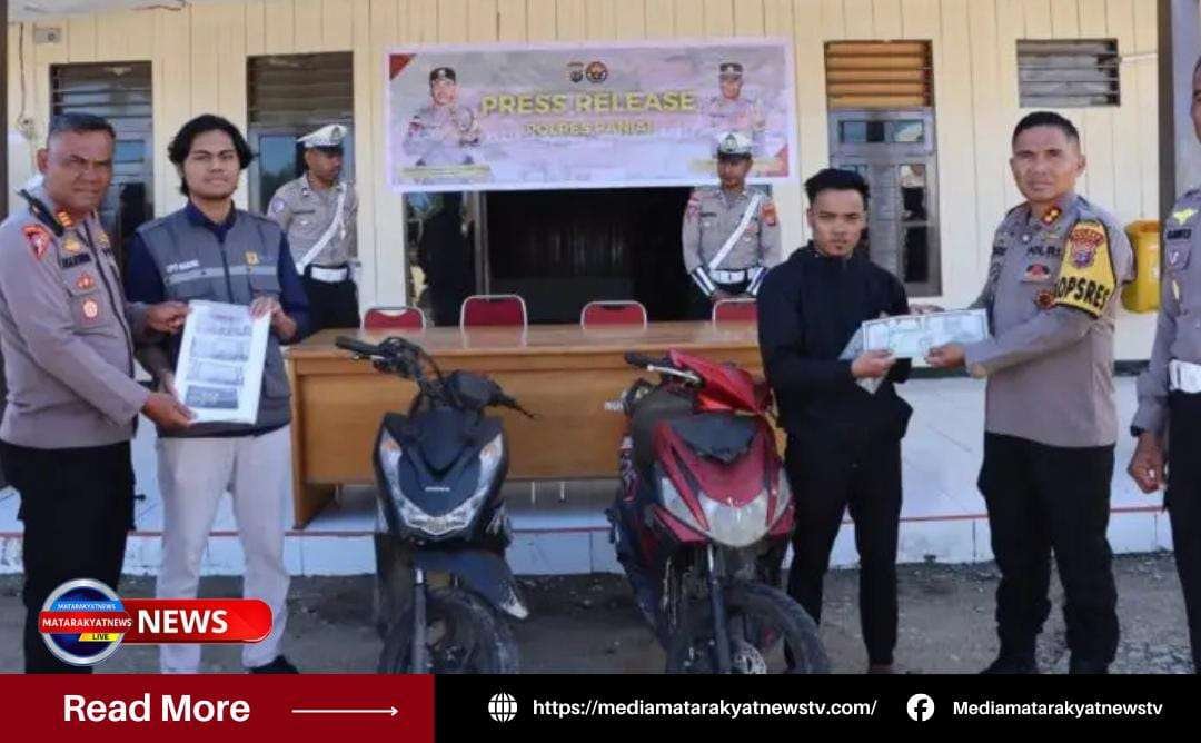 Press release tersebut dipimpin langsung oleh Kapolres Paniai AKBP Roycke H. F. Betaubun, S.IP., S.I.K., M.Si., M.Tr.Opsla, didampingi Kabag Ops AKP Hafiruddin, S.H., serta Kasat Lantas IPTU Slamet Sabaryanto, S.Sos. Dua pemilik kendaraan turut hadir di Mapolres Paniai untuk menerima langsung sepeda motor mereka.