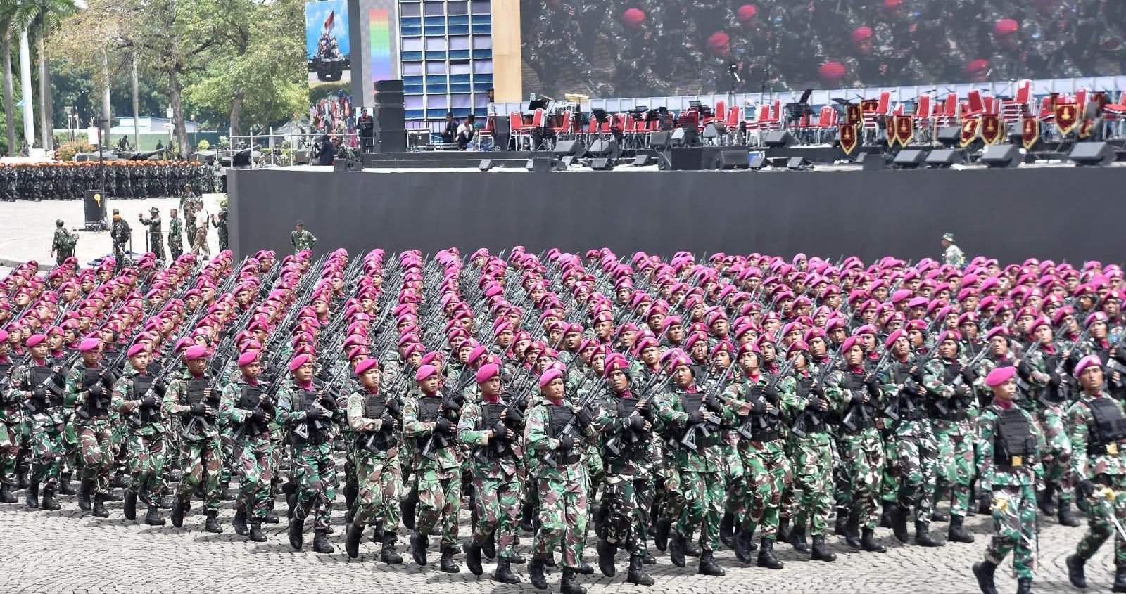Dibawah kepemimpinan Kolonel Marinir Daniel Tarigan, yang bertugas sebagai Komandan Brigade V Upacara, prajurit Petarung Brigif 2 Marinir berlatih dengan keras pada Gladi kotor upacara peringatan Hari Ulang Tahun (HUT) ke-80, Tentara Nasional Indonesia (TNI) tahun 2025, yang akan dilaksanakan di Lapangan Monumen Nasional (Monas), pada tanggal 05 Oktober 2025.