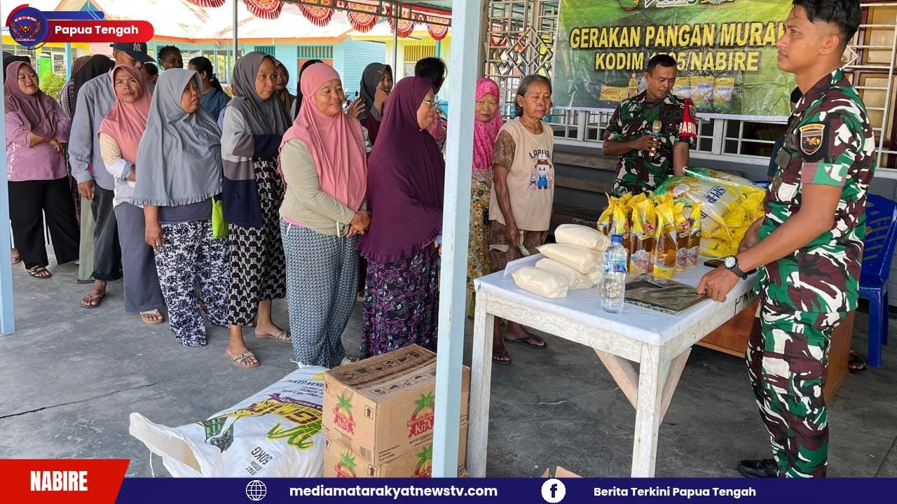 MEDIA MATARAKYATNEWS || PAPUA TENGAH, NABIRE – Dalam rangka menyambut Hari Ulang Tahun (HUT) TNI ke-80, Kodim 1705 Nabire bekerja sama dengan Bulog menggelar kegiatan pasar murah, untuk membantu masyarakat memperoleh kebutuhan pokok dengan harga terjangkau.