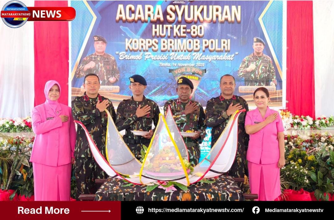 MEDIA MATARAKYATNEWS || Mimika – Bertempat di Aula Ronal Soepamena, Yon B Pelopos Sat Brimob Polda Papua Tengah dilaksanakan Syukuran dalam rangka Hari Ulang Tahun Korps Brimob Polri ke-80 Tahun, Jumat (14/11/2025).